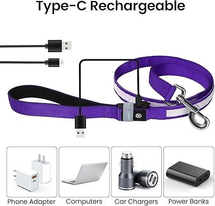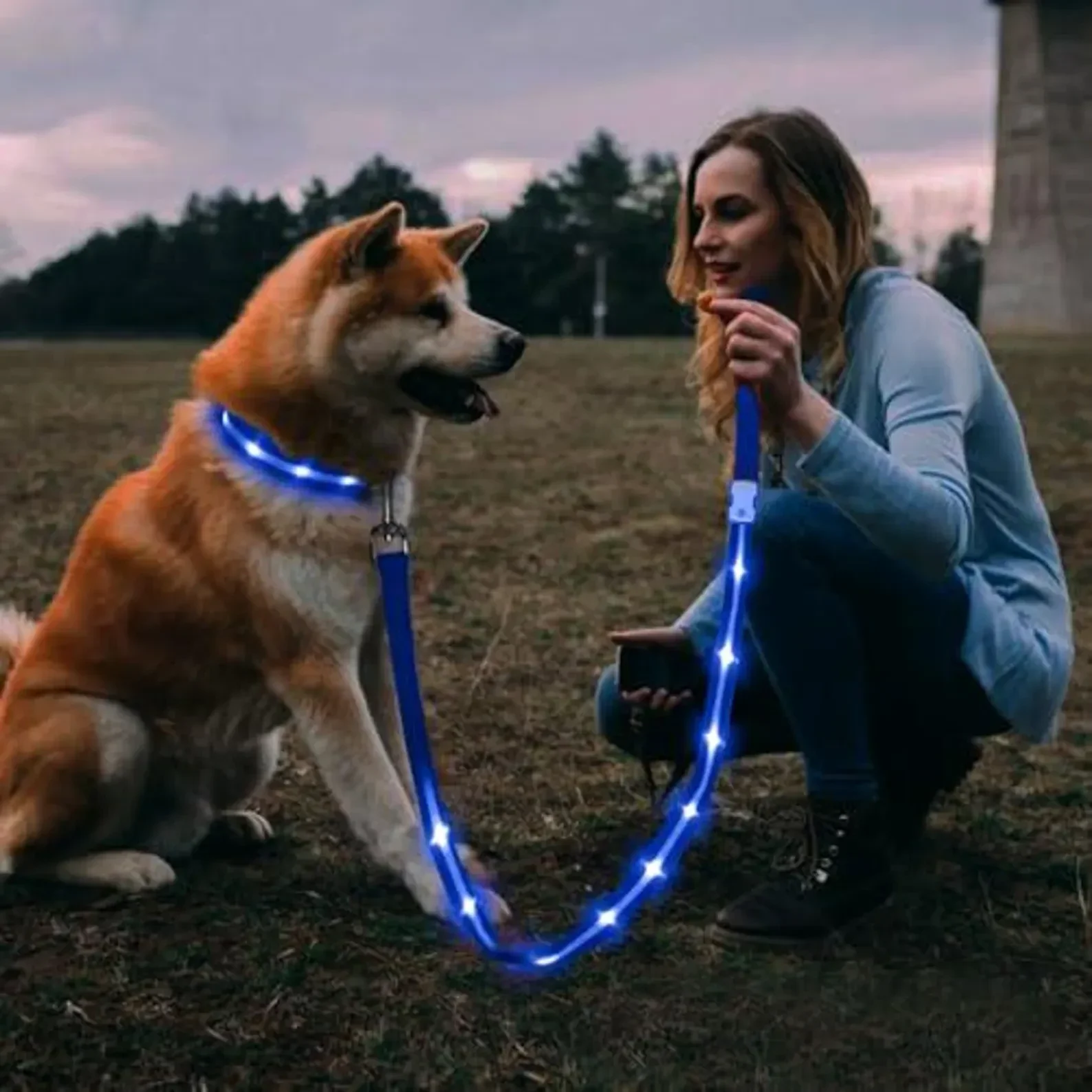 - LED LIGHT UP LEAD - USB RECHARGEABLE , three lighting modes, constant, fast flash, slow flash. Perfect for late night walks with your pet.